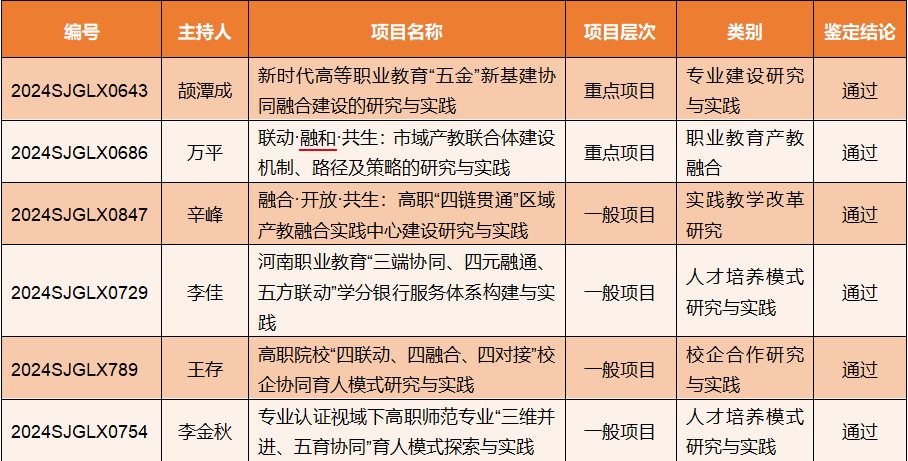 近年来,学院深入贯彻落实国家及河南省关于深化现代职业教育体系建设的系列决策部署,积极响应职业教育改革发展号召,始终将教学改革研究作为推动学院内涵式发展的重要抓手。持续完善“校级—省级—国家级”三级项目孵化机制,以校级项目为根基筑牢研究基础,以省级项目为纽带搭建成长阶梯,以国家级项目为目标凝聚攻坚力量,构建起层次分明、梯度递进、系统科学的项目培育体系,强化过程管理、加大资源保障,有效提升了教改项目的研究质量与申报成功率,推动一批高质量教改研究项目落地见效。