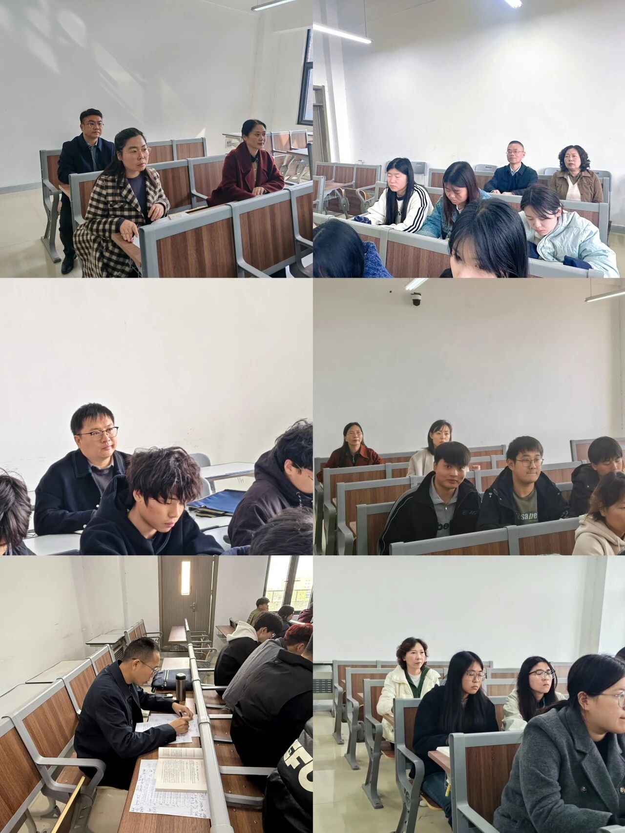 听课调研活动主要采取听、评、谈、议等方式进行。调研组从本学期思政课课表中随机抽取,推门听课,分别听取了马克思主义学院王艳成、袁晨晖等6名思政课教师的《习近平新时代中国特色社会主义思想概论》课程。听课结束后,调研组就授课现场情况与学生进行了随机访谈,了解学生对教学方法的接受度、思政课教师的认可度、思政课教材的满意度,听取了学生学习思政课的体验、收获以及对课程相关问题的看法,并在线发放“学生调查问卷”,对学院思政课教学情况进行全面调研。