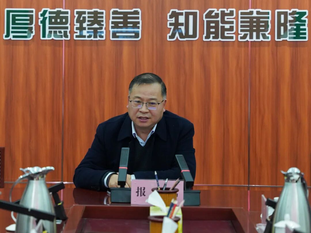 刘爱伟以《锚定规划航向 助推三门峡职教高质量发展》为题,围绕“‘十五五’规划编制的重大意义”“我市‘十五五’规划编制工作开展情况与《纲要》内容”“三门峡职业教育‘十五五’发展规划编制建议”三个方面进行了系统阐述。并就“深化产教融合、校企合作”“推动专业链、人才链与产业链、创新链紧密对接”等方面对学院“十五五”发展规划的编制提出了中肯的意见和建议。