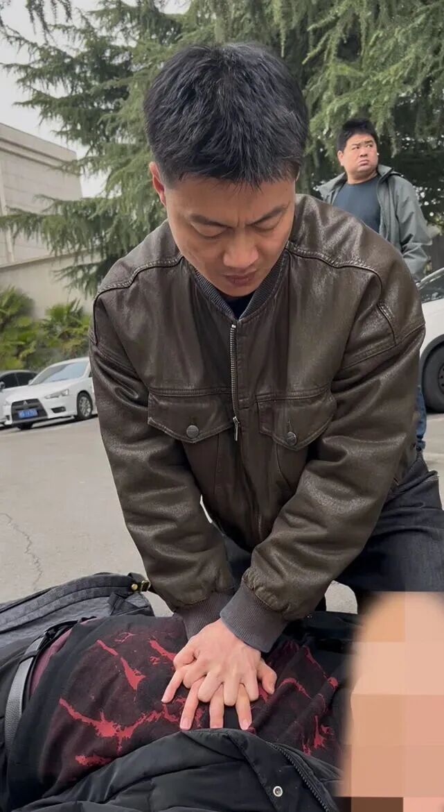 发现险情后,曹锐没有片刻迟疑,不顾身边往来的人流车流,迅速飞奔上前,第一时间拨打“120”急救电话,同时大声向周边呼救。冲到患者身边后,他快速俯身检查情况,发现男子已意识模糊、呼叫无回应,面色也出现异常改变。作为深耕运动训练领域的专业教师,曹锐熟练掌握心肺复苏、海姆立克急救法等专业技能,具备扎实的急救能力。在“120”接线人员的远程专业指导下,他立即跪地展开施救,随后闻讯赶来的学校保卫处同事也加入进来,两人交替配合持续为患者实施心肺复苏,一下、两下、三下…… 规范有力的按压穿透了周边的嘈杂,为患者争取到了最宝贵的黄金救援时间。