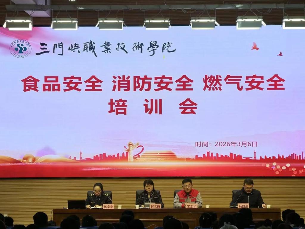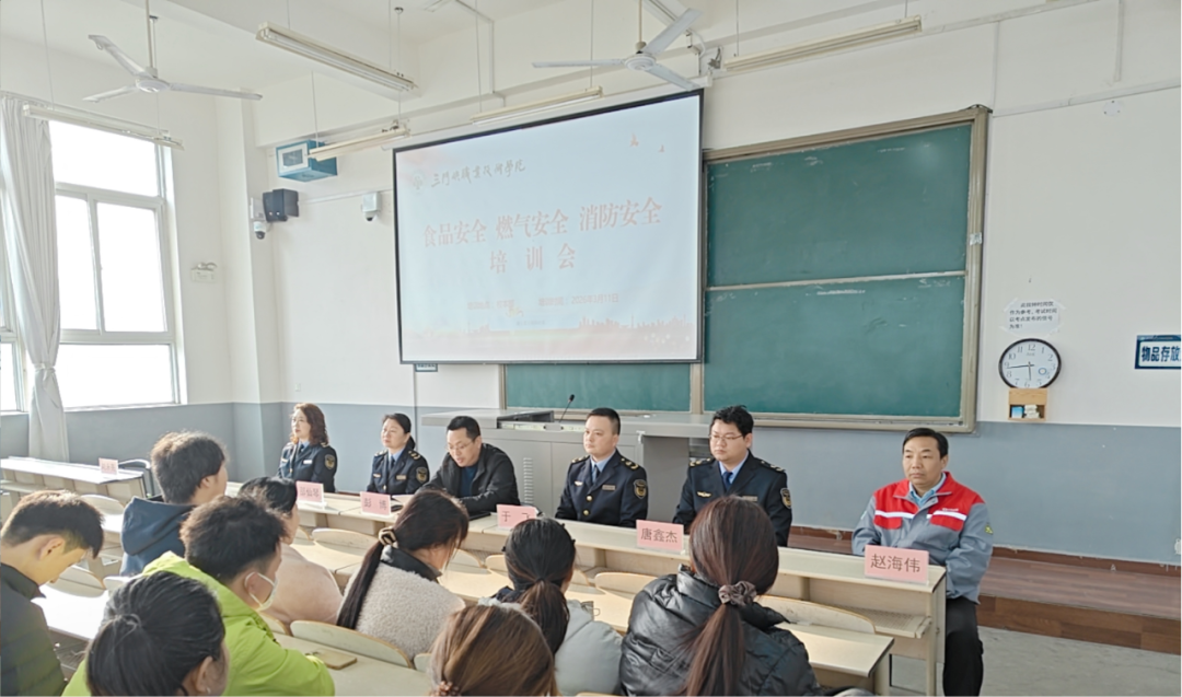 为牢固树立安全发展理念,切实提升校园安全治理水平,强化安全责任意识与应急处置能力,3月6日、11日,学院召开2026年春季学期食品、消防及燃气安全培训会。副院长彭博、后勤管理处副处长何雪梅出席会议。餐饮、物业、经营项目等从业人员共计460余人参加培训。市市场监督管理局、市消防救援大队、三门峡市中裕燃气有限公司应邀开展校园安全培训。