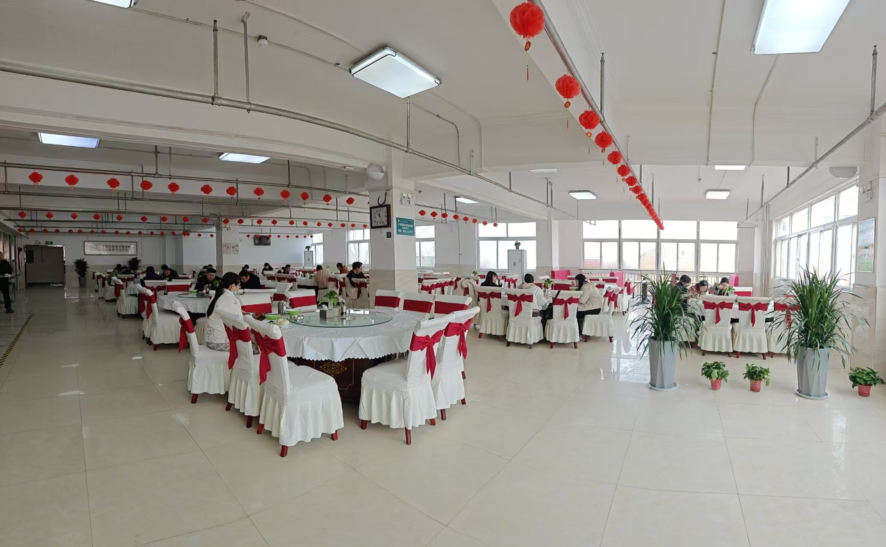 营造温馨有爱的返校氛围。精心设计了多块展板,巧妙融入欢迎标语和温馨提示;阳光洒在崭新的餐布上,常用调料品摆放整齐;鲜果与奶油甜蜜碰撞,火红吊旗写满暖心祝福,袅袅热气升腾新春暖意,让返校师生感受校园温暖。