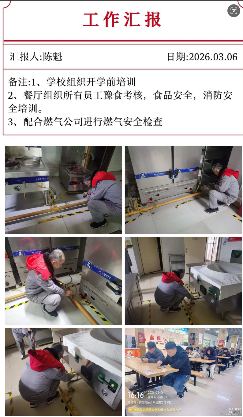 分校区召开学院2026年春季学期食品、消防及燃气安全培训会,会后分别召集员工分级开展岗前培训。全体后勤从业人员郑重签署《安全责任书》,明确自身职责、规范岗位操作流程、强化安全责任意识与应急处置能力,持续推进安全管理规范化、标准化和智能化。